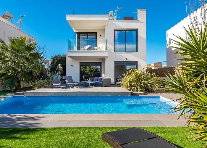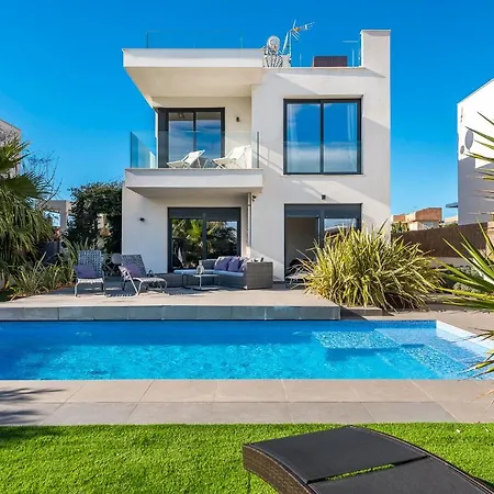 The 3-bedroom and 3-bathroom villa is located in Sa Rapita, about 10 minutes by car from Es raco de s'Arena as well as 2.4 km from Platja de es trenc Beach. The accommodation features a full kitchen with fridges, an oven and kitchenware to meet all guests' needs.